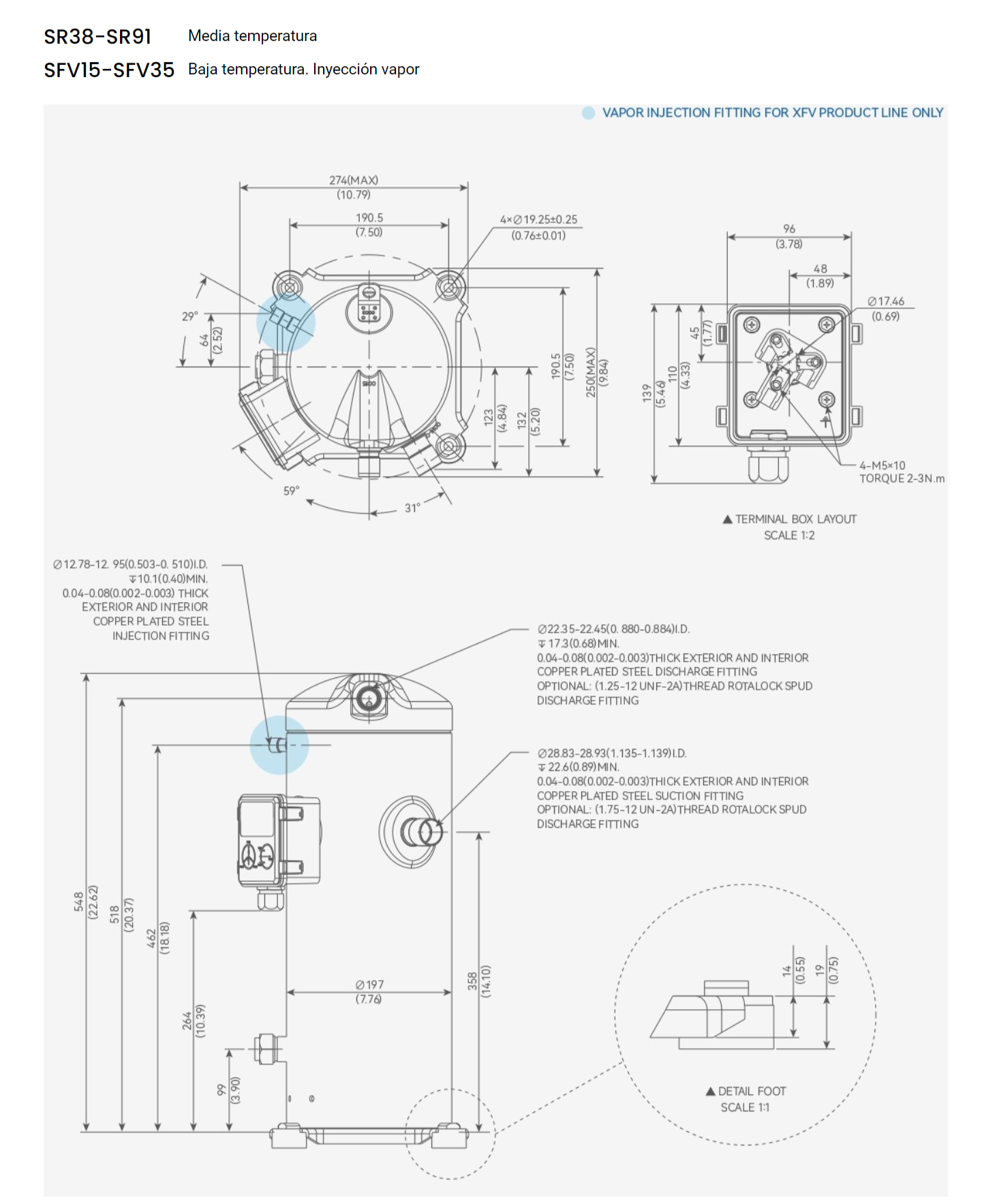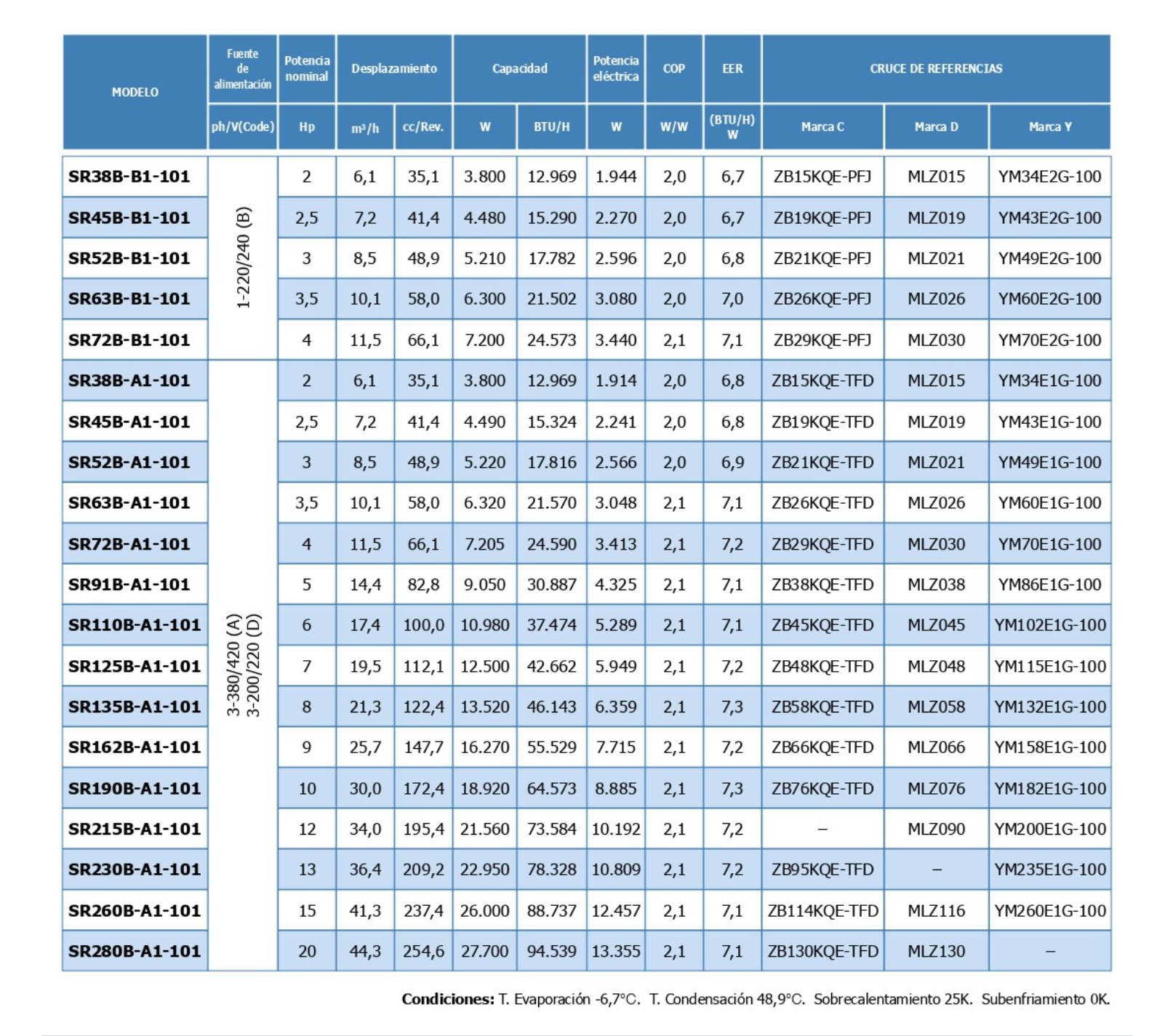 - 2-5 Hp: SR38-SR91 Medium temperature | SFV15-SFV35 Low temperature. Steam injection
