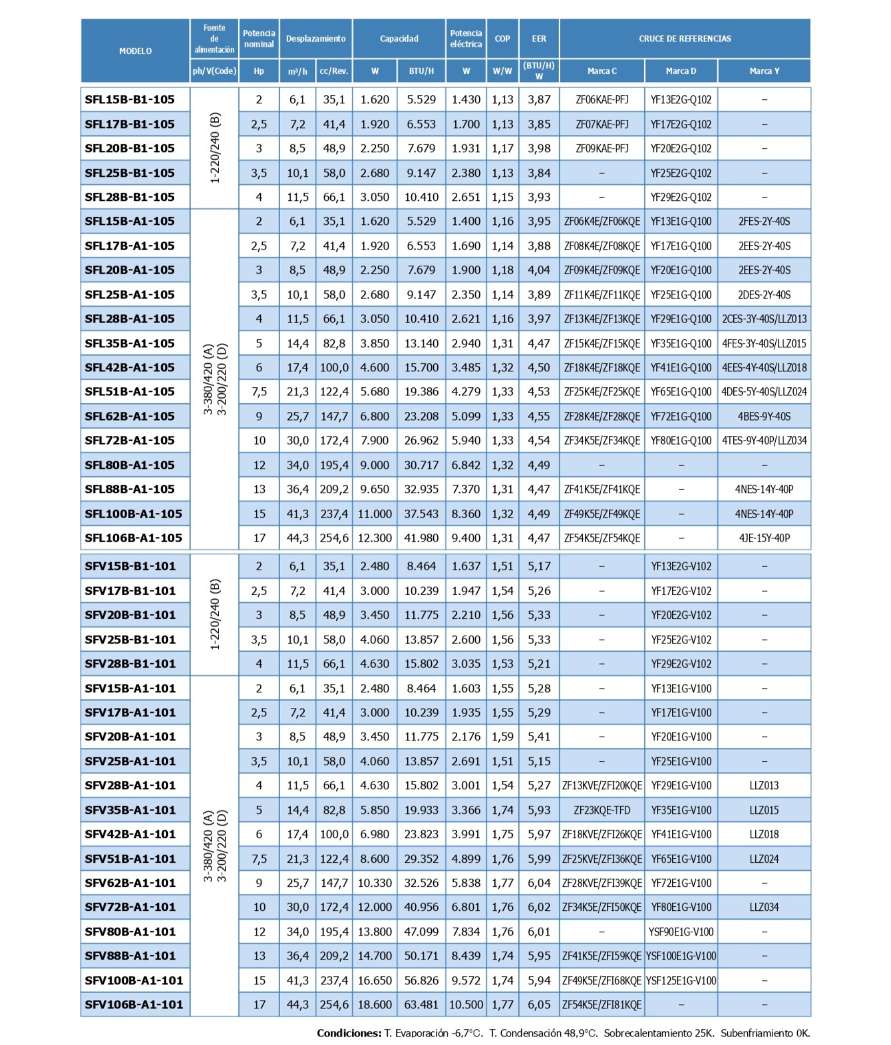 - 9-17Hp: SFL62-SFL106 Low temperature. Liquid injection